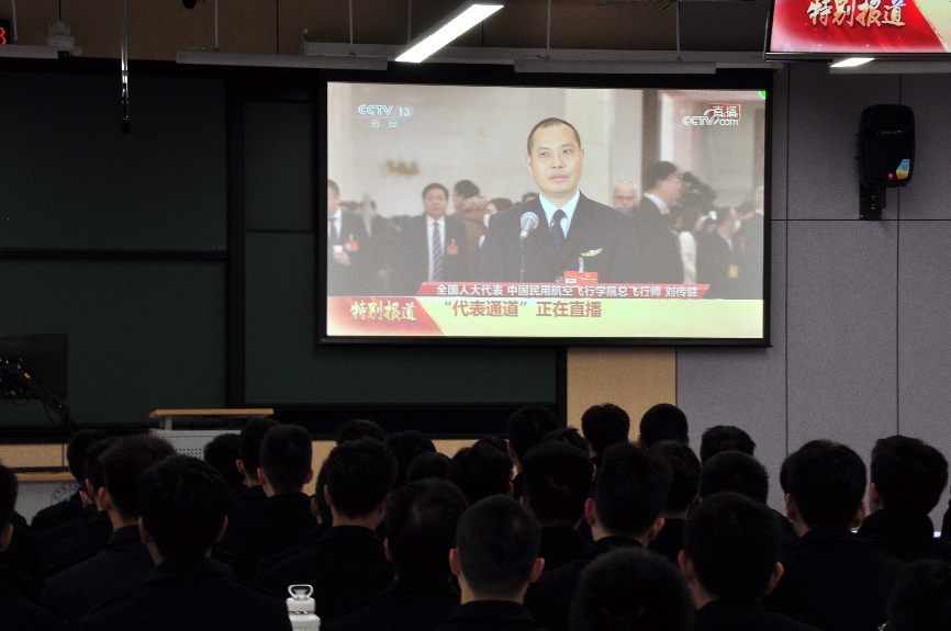 2023级学生屈可涵表示,这是她第一次观看“两会”开幕式,“代表通道”的六位代表们给她留下了深刻的印象。他们是各行各业的领军领导人物,“通民心,道民意”,在过去的十几二十年里,无不兢兢业业、艰苦奋斗。若光伏公司高纪凡没有坚持自主创新的决心,就没有成为“追光者”的契机;若没有考古所何毓灵二十五年对探索“谜团”的寂寞坚守,就没有世人赴一场与商文明的千年之约;若刘传健机长没有飞行背后的千锤百炼,就不会有力挽狂澜的奇迹出现!青年铸就时代,韶光不负国家!身为飞行学员,未来也会将“安全视为民航业的生命线”,会将汗水付诸于实际行动,立足目标,踔厉奋发,砥砺前行!”
